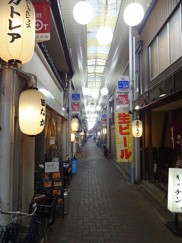 三条大橋から三条通りを東へ進むと古川町商店街がある。商店街を少し入ってみると提灯がいい感じ。生ビールのノボリに誘惑され、早くも挫折の予感がしてきたが、ここはガマン、再び自転車で進む。