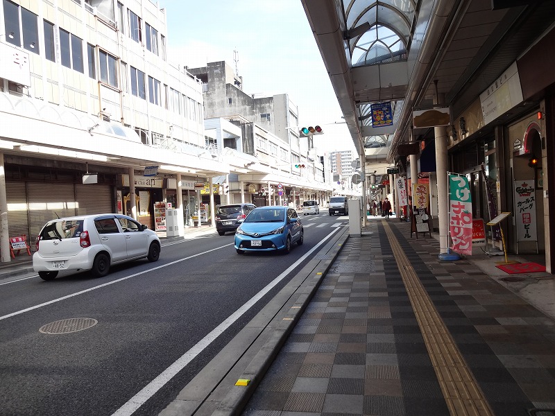 JR富士駅から北へ伸びる富士本町商店街。アーケード越しに見える富士山。