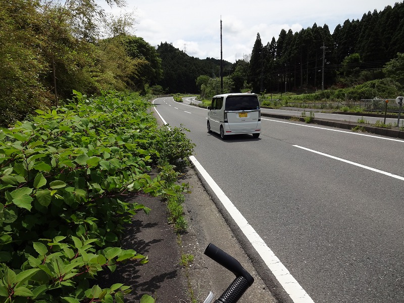 国道1号は交通量の多い道だが歩道もあり安全に走行できる。と思いきや葉っぱが茂って通れない。旧道を行けばよかった。