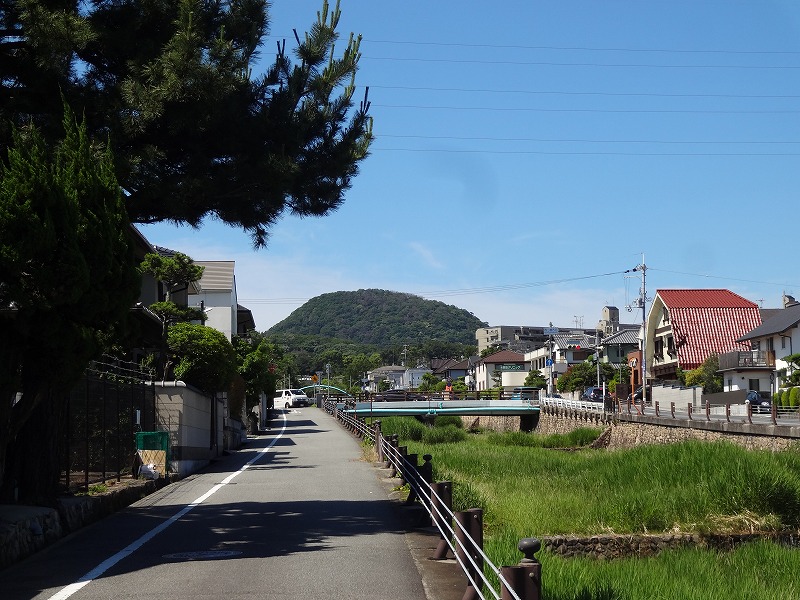 武庫川にかかる宝塚新大橋。甲山がじゃっかん見える。
