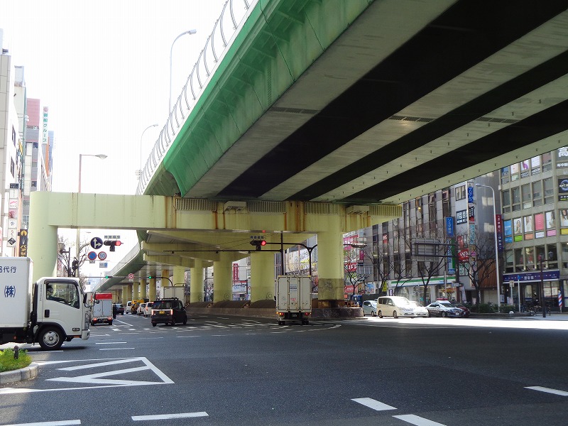 船場中央三丁目 東西は中央大通り。高架は阪神高速16号。