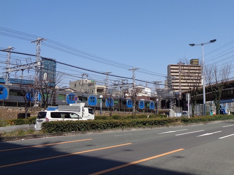 お昼寝ネコちゃんの上をハローキティの特急はるかが通り過ぎていく。個人的にはこの付近に環状線の駅を新設したい。駅名は市岡本町駅なんてどうだろう。