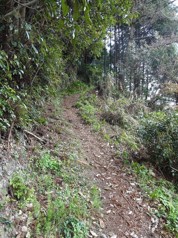ヘアピンカーブを曲がると、右手に遍路道の立て札が現われた。入って行きたい誘惑に駆られるが舗装路を進む。