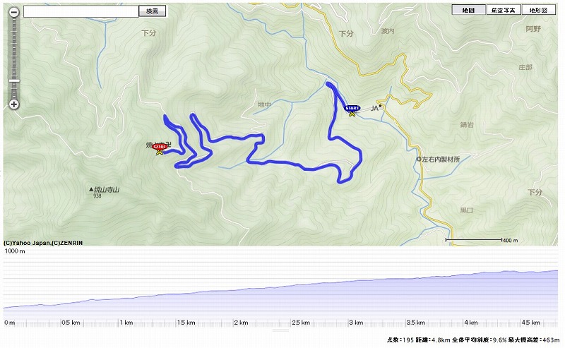 いっぽう遍路道は山を直線的に登っていくので距離は1.9kmと短いが、その分斜度は平均23.6%にもなる。帰りは遍路道のオフロードダウンヒルを楽しもう。
