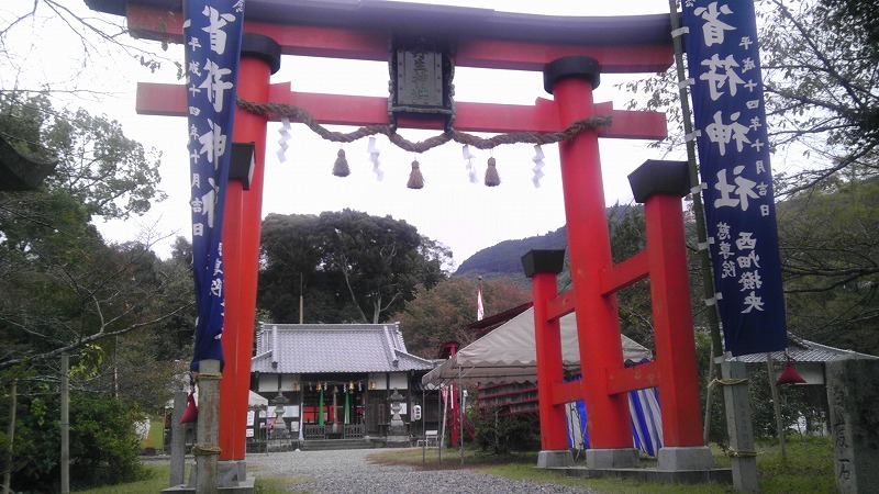 180町石からさらに続く石段を上りきり、朱色の鳥居をくぐると丹生官省符神社。