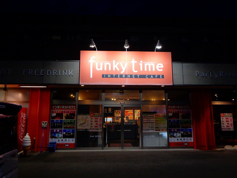 高知大学がある朝倉は学生の町だけあってネットカフェやら居酒屋やらスーパーやらコンビニなどいろいろとある。今晩の仮眠場所はファンキータイム朝倉店。