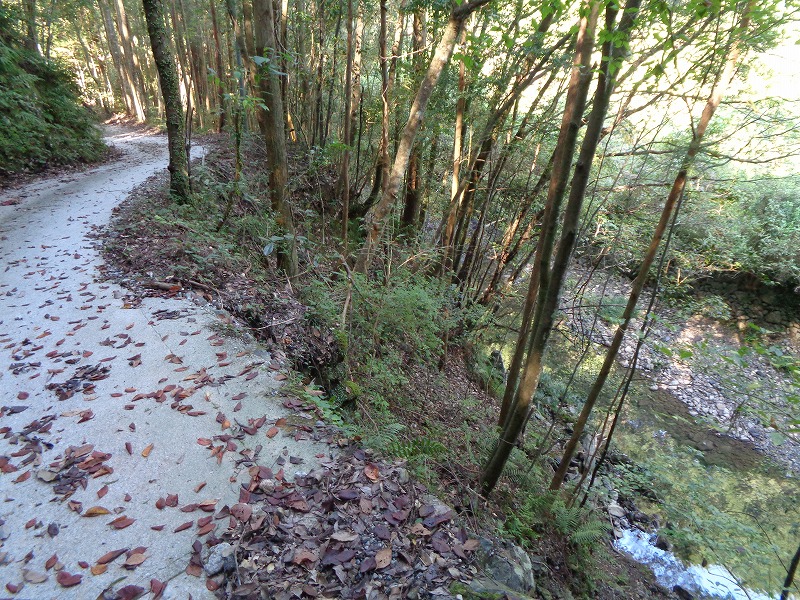 県道からそれる形で憩いの道と称するへんろ道を行く。小川沿いのいい雰囲気の道。