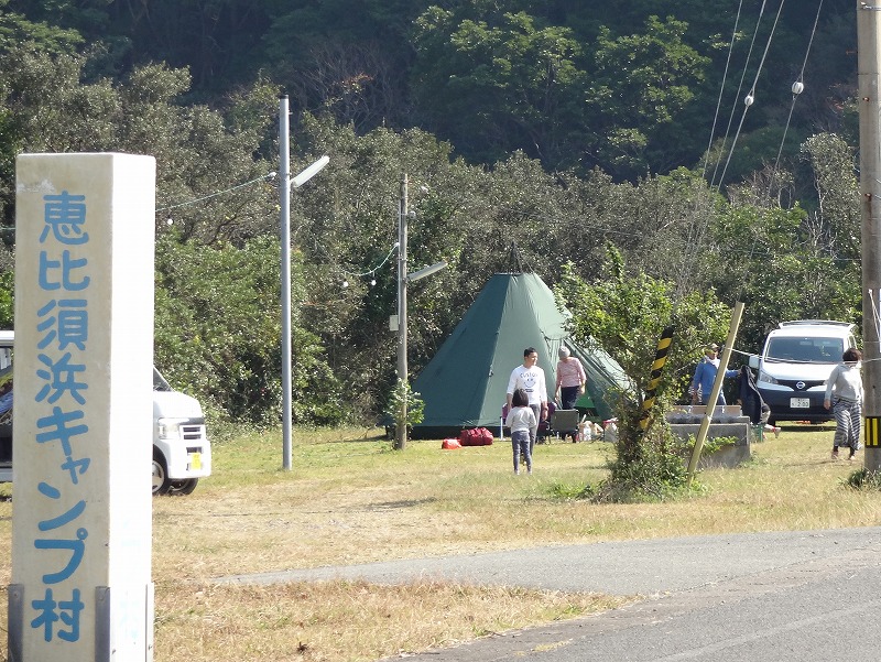恵比須浜キャンプ場。目の前は海水浴場。磯も近くにあり、釣りもできる静かでのんびりできそうなキャンプ場。
