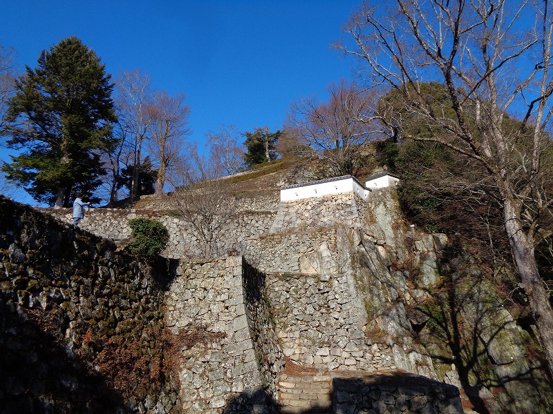 三の丸。段々に築かれた石垣は山城の醍醐味。