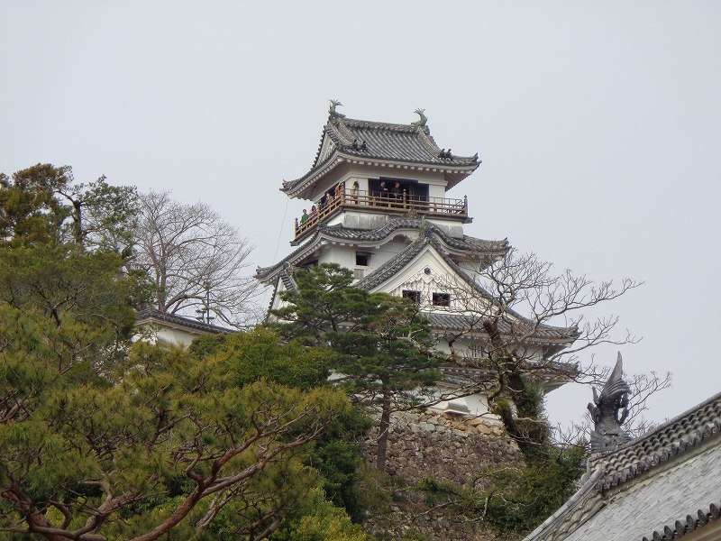 二の丸から天守を望む。外観4重だが内部は3層6階の望楼型天守で、最上階には廻縁高欄が付けられている。
