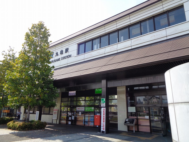 丸亀駅に到着、乗り継ぎしつつといえ4時間以上座っていると腰とお尻が痛い痛い。でもハラは減るもんだ。まずは駅の観光案内所で美味いうどん屋さんを紹介してもらおう。セルフの店は駅近かには無いようだ。