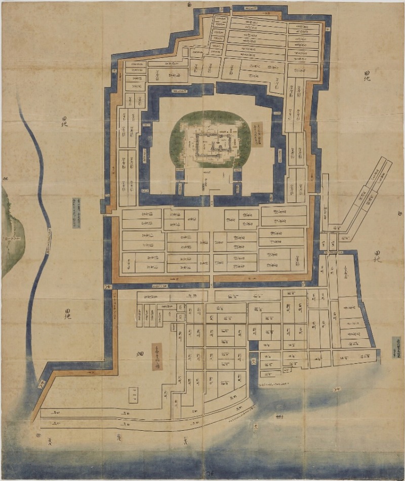 正保城絵図は、正保元年(1644年)に幕府が諸藩に命じて作成させた城下町の地図。城郭内の建造物、石垣の高さ、堀の幅や水深などの軍事情報などが精密に描かれているほか、城下の町割・山川の位置・形が詳細に載されている。各藩は幕府の命を受けてから数年で絵図を提出し、幕府はこれを早くから紅葉山文庫に収蔵した。幕末の同文庫の蔵書目録『増補御書籍目録』には131鋪の所蔵が記録されているが、現在、国立公文書館に63鋪の正保城絵図が所蔵されている。