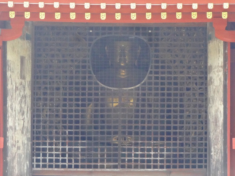 ご本尊の阿弥陀如来坐像のお顔を拝顔できるように丸い切抜きがある。