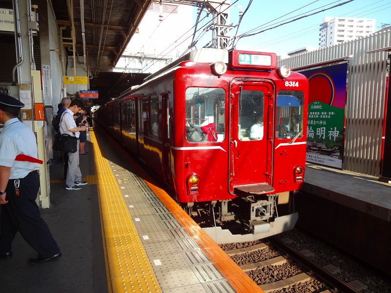 前夜の宴会が影響し若干出遅れてしまったが、今日の輪行(電車にタイヤを外して袋詰めした自転車を乗せて移動する事)のルートは、大阪駅で大阪環状線に乗り換え、鶴橋駅から近鉄で奈良に入る。マルーンレッドにシルバーのラインを入れた復刻塗装の準急820系に乗る。。