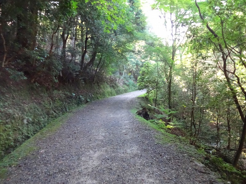 いよいよ、古来より春日大社の神域として保護されてきた、春日山原始林の中を通る「春日山遊歩道」の入口に到着。踏み固められた砂利道なので走りやすい。
