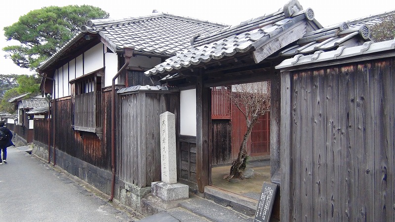 旧久保田家住宅。久保田家は、呉服商・酒造業を営んでいた。建物は江戸時代の後期に建てられ、主屋・門・塀・離れが御成道に面し、菊屋家住宅と対峙するかのように立ち並んでいる。